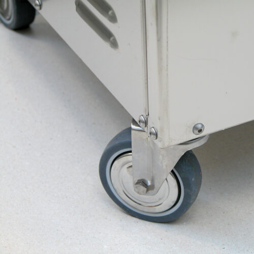 - Pivoting wheels with brakes, suitable for use in food processing areas